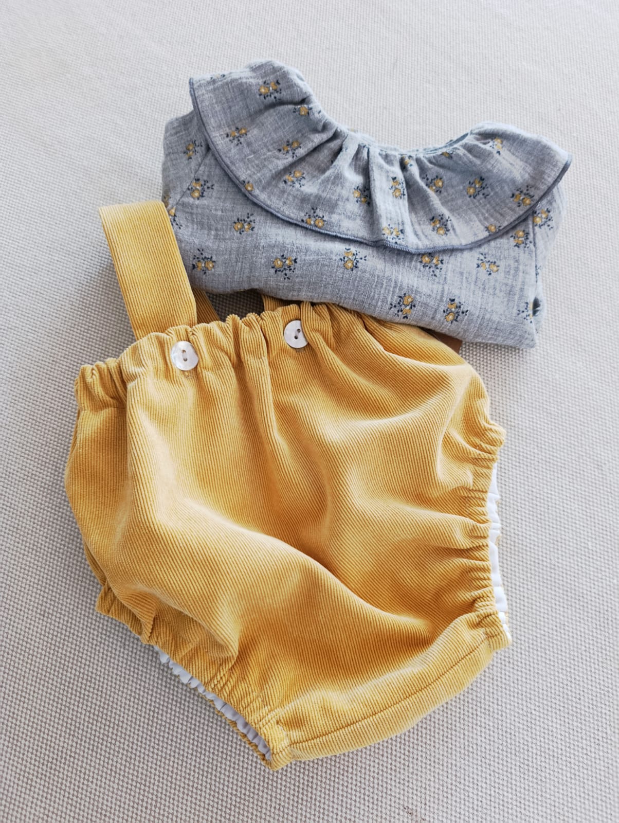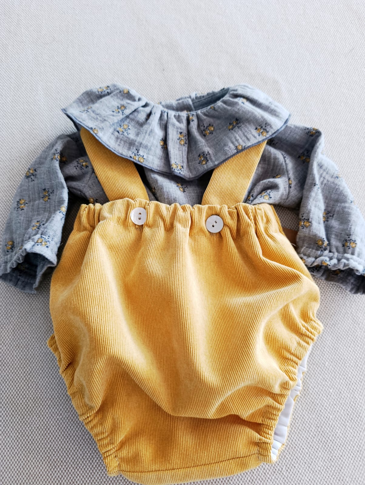 Nuestra ranita alta de tirantes en pana combina comodidad y estilo en una prenda irresistible. Confeccionada en pana de alta calidad, su diseño de cintura alta y tirantes cruzados aporta un aire vintage ideal para el otoño e invierno. Los botones delanteros y el elástico trasero aseguran un ajuste cómodo. Disponible en varios colores cálidos y suaves, perfecta para crear conjuntos adorables con camisas o leotardos.