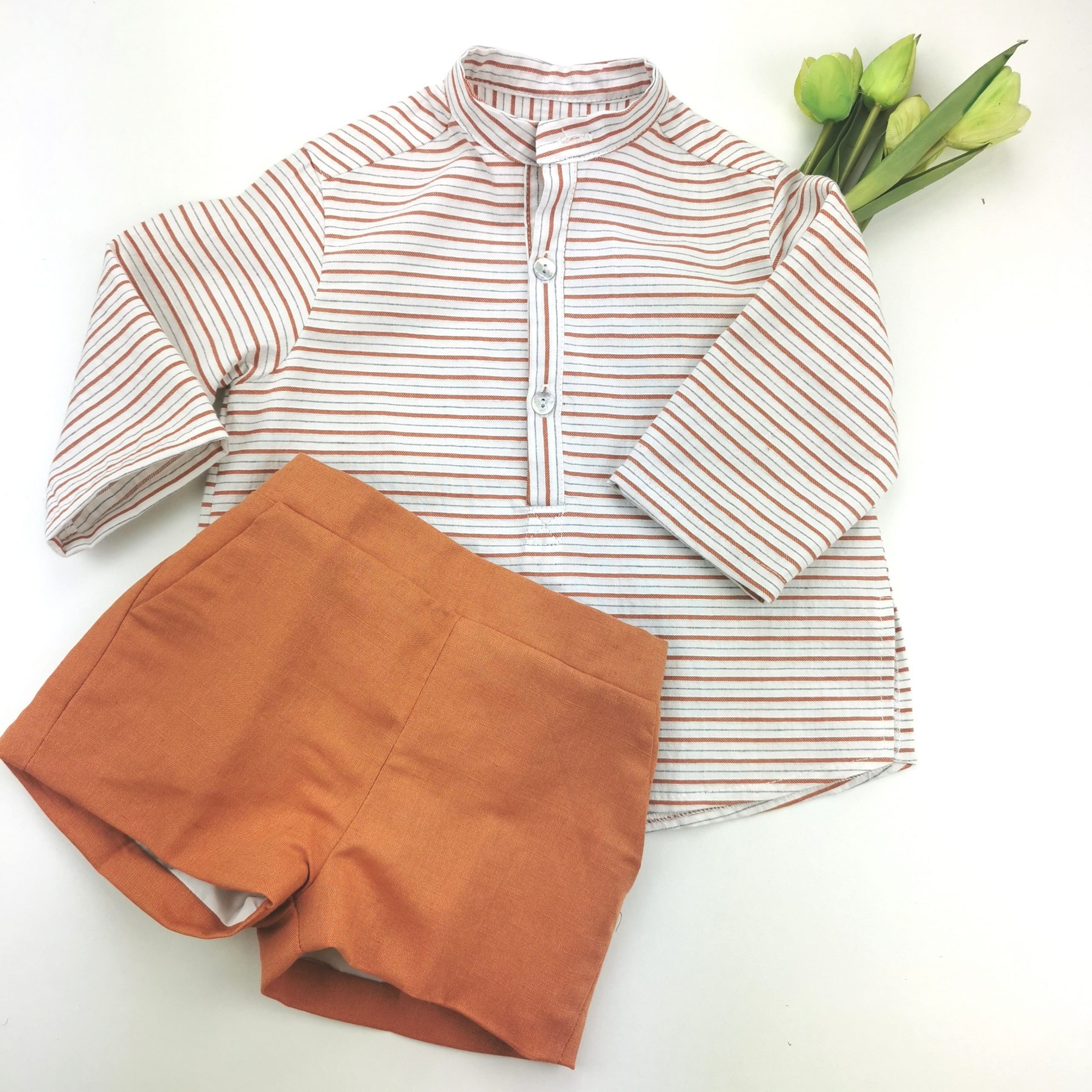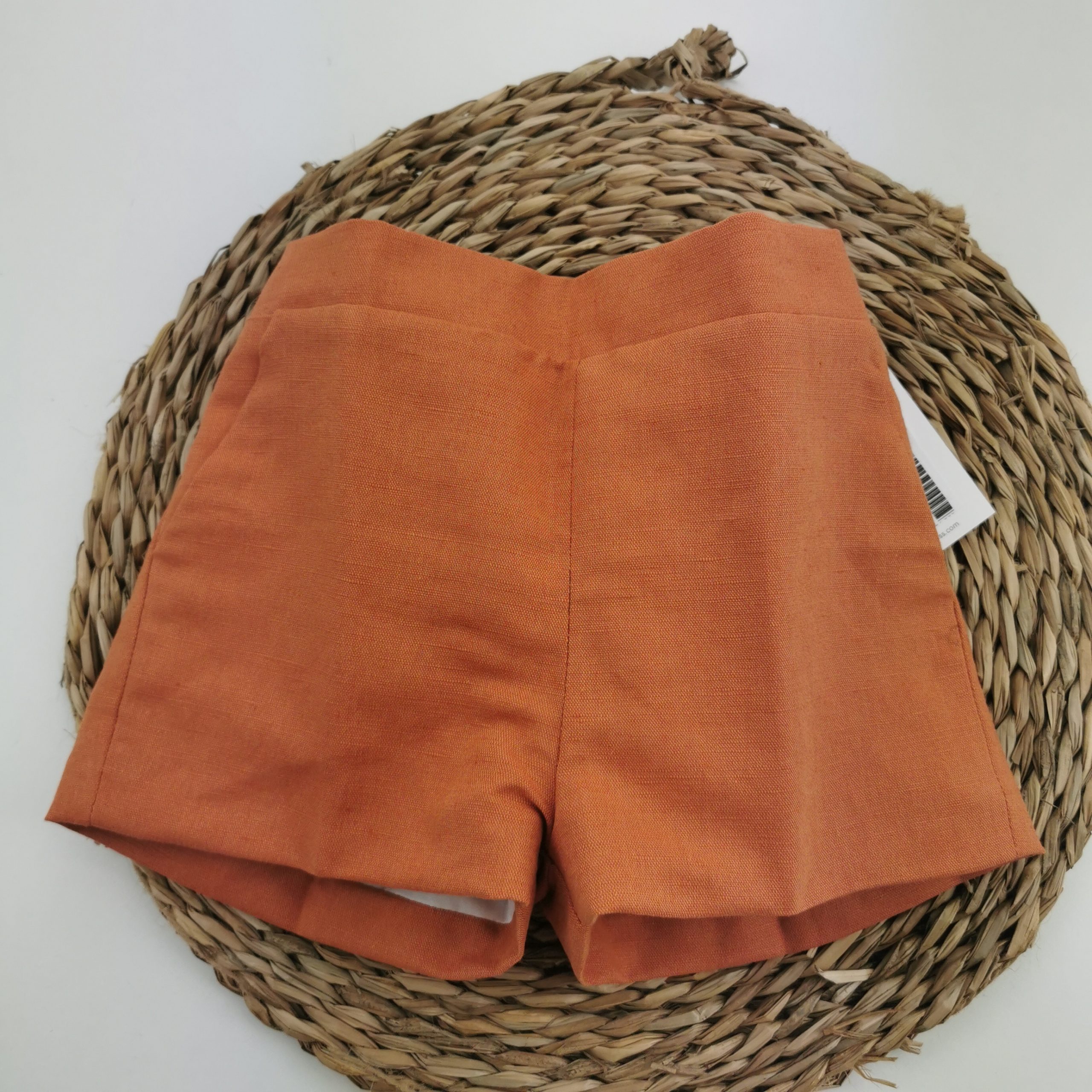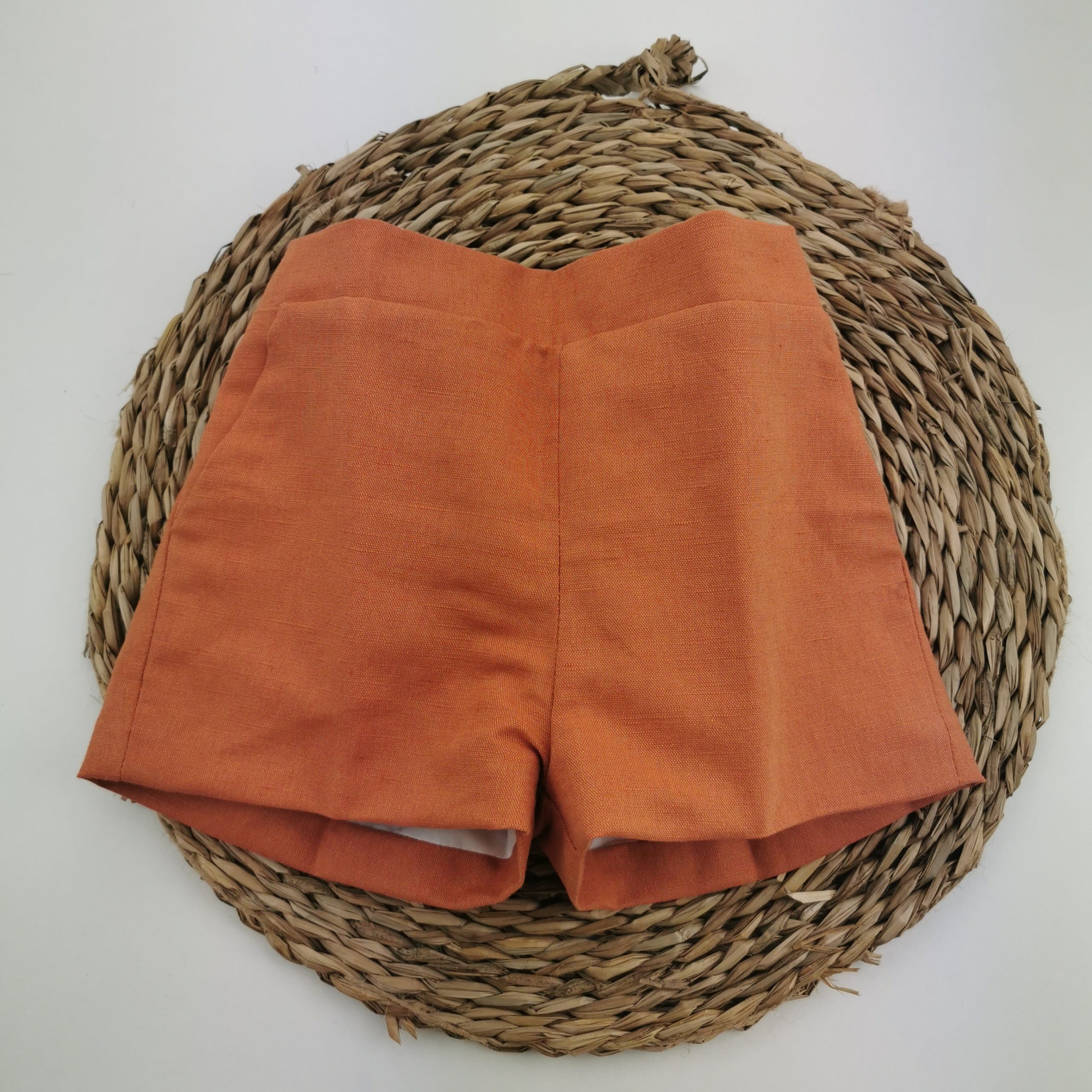 Bermuda de niño en lino con bolsillos y goma de ojal por detrás, esta forrada
