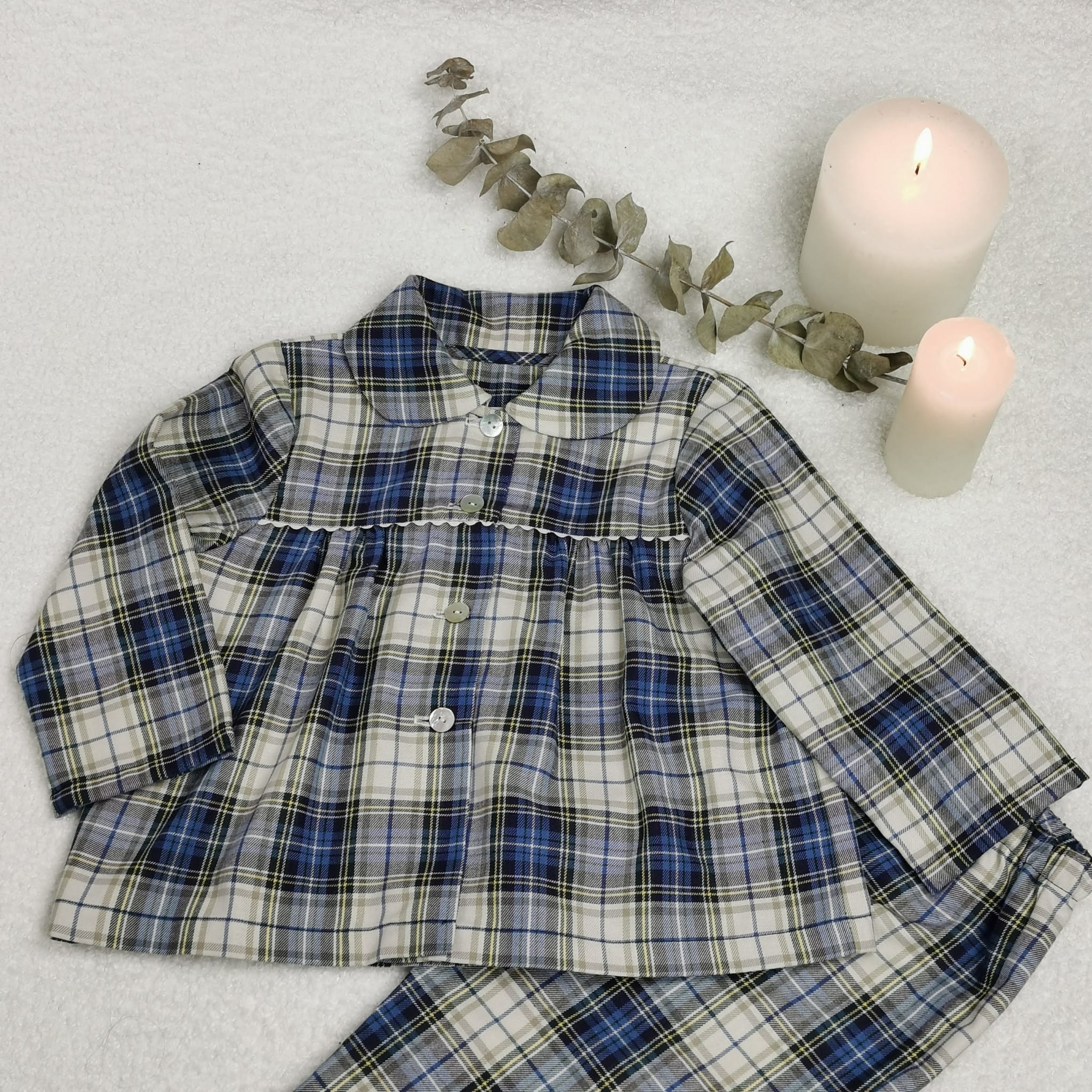 Pijama de niña en escoces verde cortado en el canesu